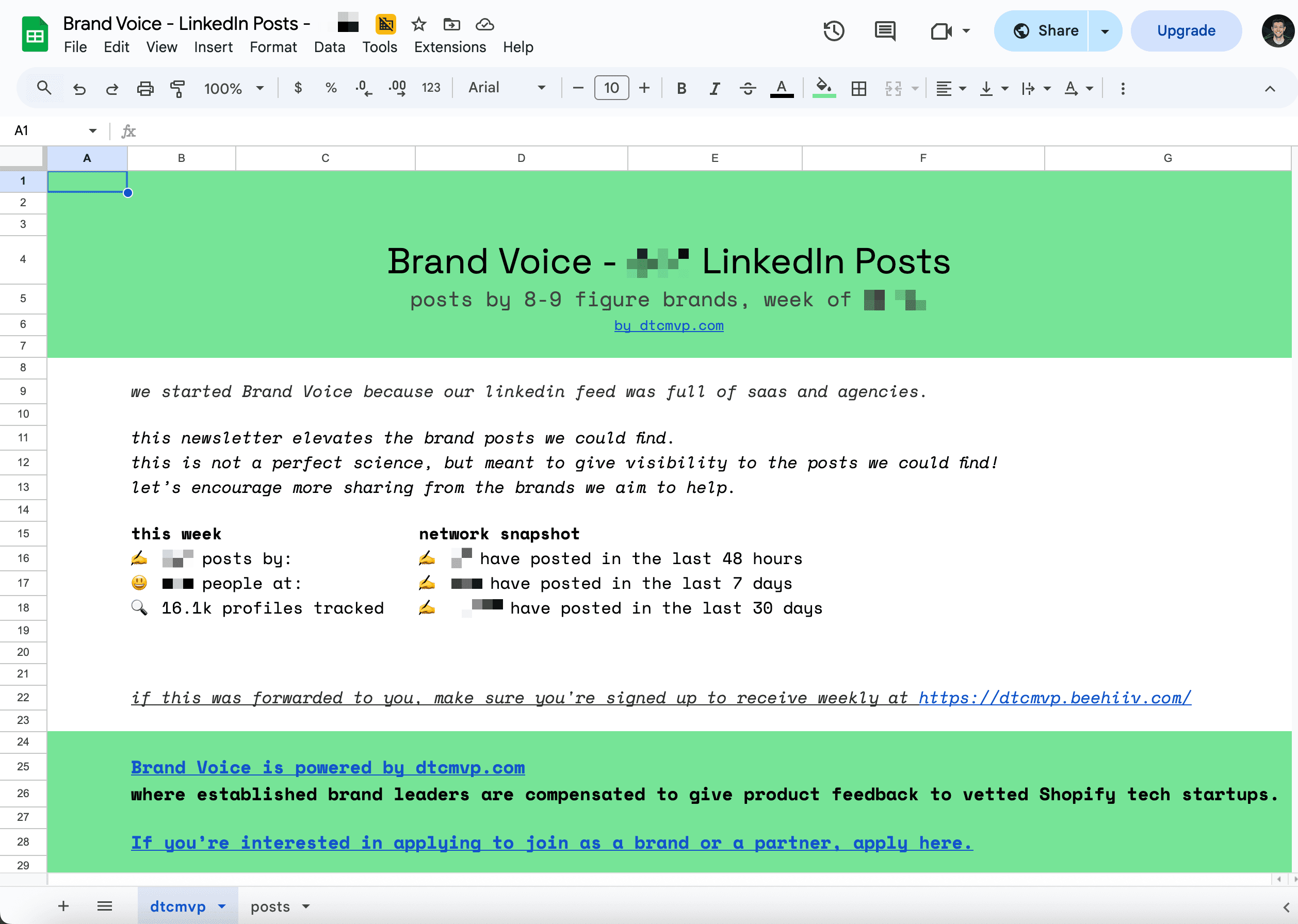 every post by 8 + 9 figure brands and a google sheet of the profiles and urls 📬